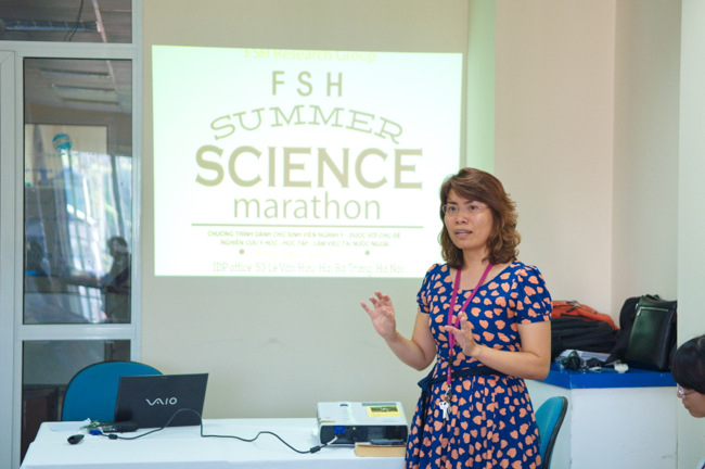 Từ ngày 10 đến 14 tháng 7 vừa qua, tại Hà Nội đã diễn ra sự kiện FSH Summer Science Marathon do nhóm nghiên cứu khoa học FSH – Friendship & Science for Health – phối hợp cùng IDP education tổ chức. Chương trình được tổ chức nhằm mục đích tăng cường sự giao lưu giữa những bạn trẻ cùng chung niềm đam mê khoa học, giúp trang bị cho sinh viên một số hiểu biết cần thiết về nghiên cứu và chia sẻ một số kinh nghiệm xin học bổng, sinh sống và học tập ở nước ngoài từ một số cựu thành viên của FSH.